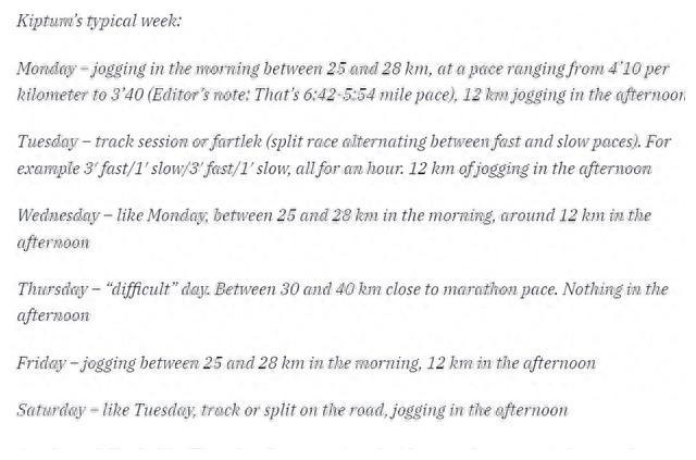 基普图姆作为男子马拉松世界纪录的保持者,他的训练计划着重于一致性和长期性。他不仅进行长跑和轻松跑,还采用了法特莱克训练、跑道训练和核心训练等多种类型的运动。这种多样化的训练方法有助于提高他的速度和耐力,并为他在比赛中保持持续高水平的表现提供了坚实的基础。