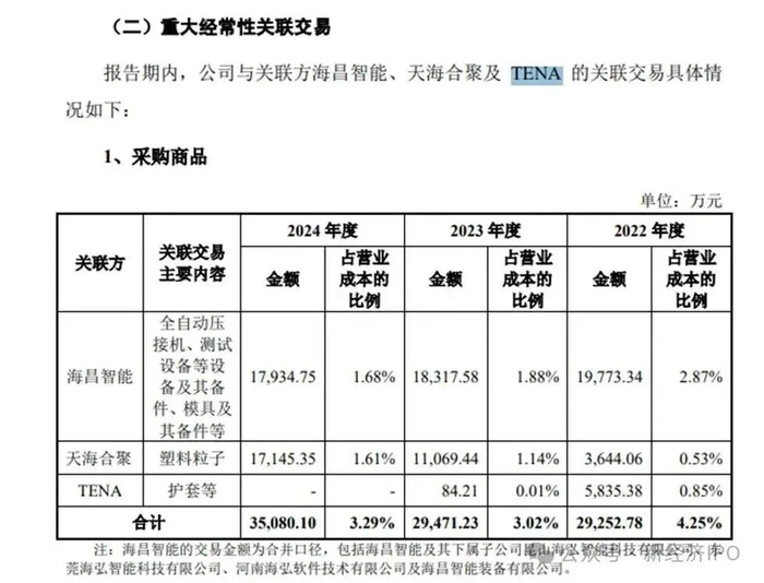 在此前的文章中,新经济IPO曾指出,天海电子报告期内单项计提的坏账准备包括TENA的8744万元(账面余额1.16亿元),加上TENA子公司欧洲天海合计接近1.28亿元。这些欠款从2022年末一直拖到2024年末,基本没有收回。这意味着,天海电子将TENA出售给AE后,后者一直没有支付上亿元的应付账款。而且很奇怪的是,TENA拖欠巨额账款,但天海电子2022年、2023年仍然向其采购了5835万元、84万元的护套等产品。