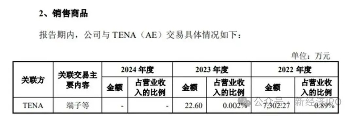 2022年和2023年,天海电子仍然向TENA销售7302万元、22.6万元产品。
