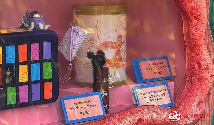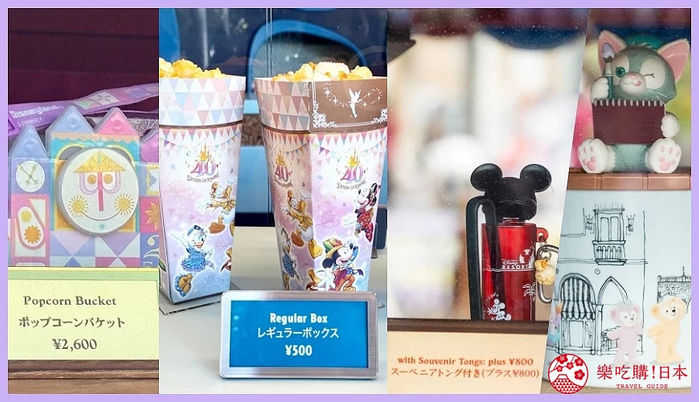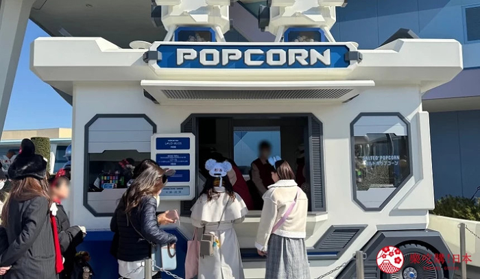 不同款式的爆米花桶价格也会有所不同,购买时简单跟职员说「Bucket」(バケット),或是指着摊位内展示的爆米花桶就可以买到了。爆米花桶不能单买,只要购买就一定会附有爆米花。若想要保持爆米花桶内部清洁的状态的话,可以在购买时跟职员说:「Bucket, popcorn separate」,这样职员便会用纸盒另外装好爆米花给你。