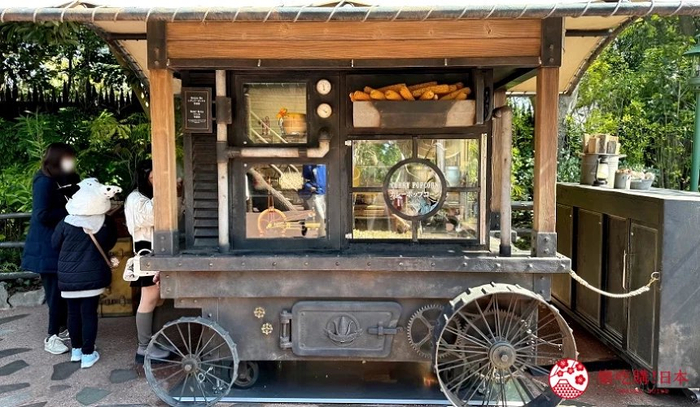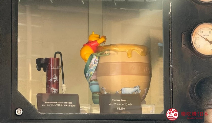 喜欢小熊维尼的粉丝绝对不能错过可以在乐园「⑦ 小熊维尼猎蜜记前」买到的「小熊维尼爆米花桶」!它是唯一可以买到蜂蜜口味爆米花的地方,难怪小熊维尼会出现在这里。圆滚滚的蜂蜜罐造型加上正要偷吃蜂蜜的维尼真的是太可爱,令人购买慾爆棚!