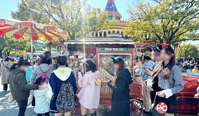 小小世界爆米花桶贩售地点 & 口味⑥ 城堡旋转木马旁:奶茶口味⑩ 蹦蹦爆米花小车:焦糖口味⑬ 霹雳啪啦爆米花:草莓千层酥、盐味焦糖、巧达起司口味