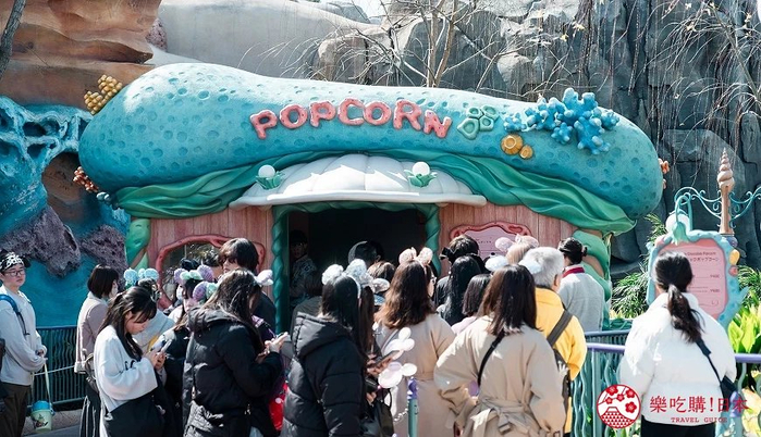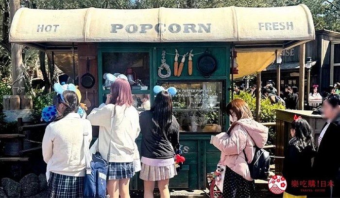 东京迪士尼除了在爆米花桶造型上花尽心思外,对爆米花口味同样非常讲究。除了最常见的焦糖口味以外,还有牛奶巧克力、奶茶、咖哩、黑胡椒等口味,在「霹雳啪啦爆米花」(ビッグポップ)商店还能买到比一般爆米花更大颗、调味更均匀的「BB 爆米花」!不只可以收集造型可爱的爆米花桶,还能享受不同独特风味的爆米花,一举两得!每个摊位贩卖的爆米花口味都会有所不同,在购买之时记得先确认摊位上写着的口味名称。
