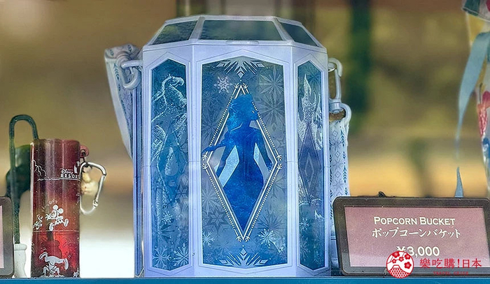 「冰雪奇缘爆米花桶」也是另一款附有光源的爆米花桶。开灯后彷佛一盏水晶灯,蓝色的光线与半透明的外壳彷佛冬夜中的一抹亮光,背带上还有超可爱的雪宝,是「冰雪奇缘」粉丝们必买周边之一!在其中一个贩卖处「② 船坞边舞台前」还有很少见的蒜香虾口味可以选择,喜欢咸食的话可以来尝鲜。