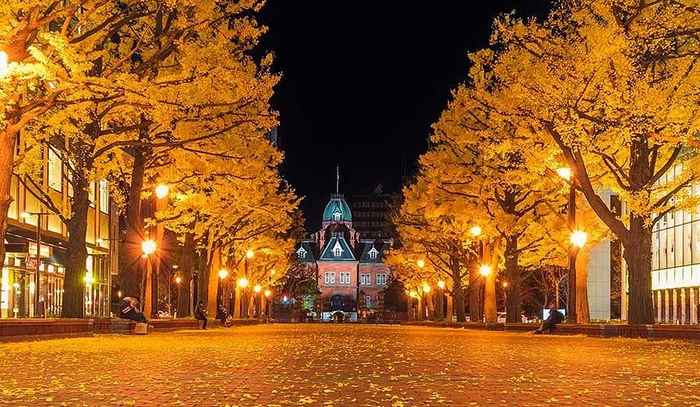 虽然不是以枫叶景点闻名,但是秋天来到札幌市中心,推荐顺道去「北海道厅旧本厅舍」(又称为红砖厅舍)赏银杏!这座建于1888年的红砖建筑,曾是北海道政府的办公地点。每当秋天来临,这里的前庭就会被染上迷人的金黄色彩,成为赏银杏的绝佳景点。红砖与鲜黄的银杏交相辉映,营造出古典与自然的美妙融合。特别是夜晚时分,红砖建筑在夜间点灯的映照下,显得格外壮丽。漫步于此,不仅可以欣赏秋天的美景,还能感受到浓厚的历史氛围,是北海道秋季旅游中不可错过的景点。