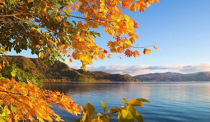 支笏湖是日本深度第二深的湖泊,湖面清澈、透明度很高,枫红倒映在湖面上的景色令人惊艳。可以搭游览船游湖,是既可以赏红叶景打卡,又可以游玩的自由行景点!