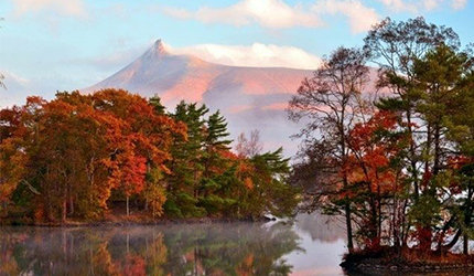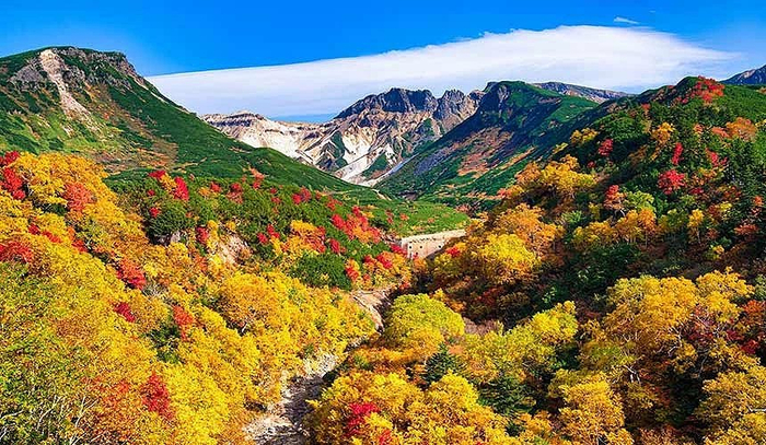 同样位于大雪山国立公园内的十胜岳,也是十分闻名的赏枫景点。每年从九月下旬开始十胜岳便进入赏枫季节,山谷间红叶与山顶白雪形成鲜明的对比,景色壮观且震撼。登上山顶的话,还可以俯瞰整片染红的山谷,是一种无与伦比的视觉享受。此外,山区内还有温泉可供放松身心,彻底感受大自然的恩赐,是摄影爱好者和大自然爱好者的理想去处。