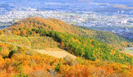 札幌藻岩山缆车道・红叶赏期:10月中旬~10月下旬・交通方式:从札幌市电山鼻西线「缆车入口 (ロープウェイ入口)」站搭乘免费接驳车约 2 分钟