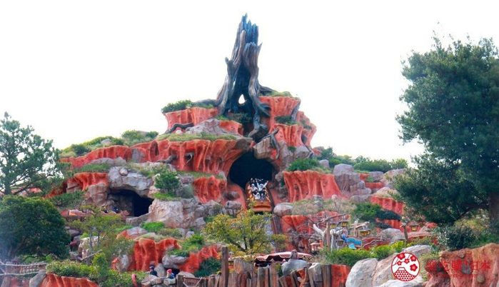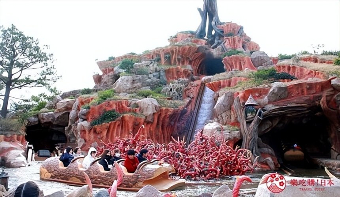 飞溅山(スプラッシュ・マウンテン)・所在区域:动物天地・搭乘时间:约 10 分钟・游乐设施种类:绝叫系,孕妇、高龄者、身高未满 90 cm的游客不得搭乘