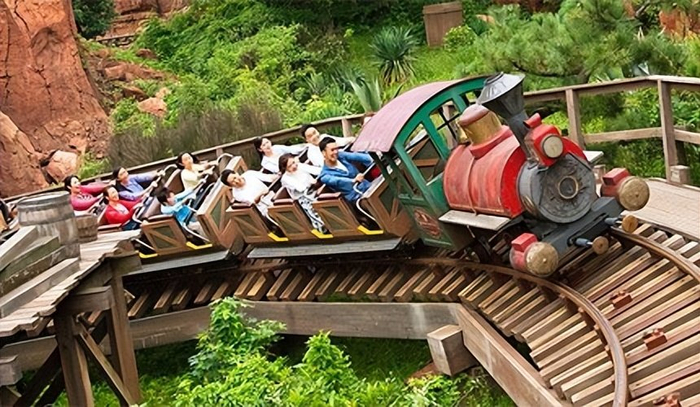 「巨雷山」同样是自迪士尼乐园一开园就有的经典设施,以淘金年代为背景,无人驾驶的采矿列车瞬间失去控制,发狂地在坑道中奔驰。乘客们搭上失速列车,穿越山壁与木造陡坡,最高处时意外减速暂停,能利用短暂的停滞时间俯瞰整座园区,景色非常壮丽。特别推荐黄昏时分搭乘,乘着夜色与晚风更有气氛!是内行玩家才知道的秘密玩法!