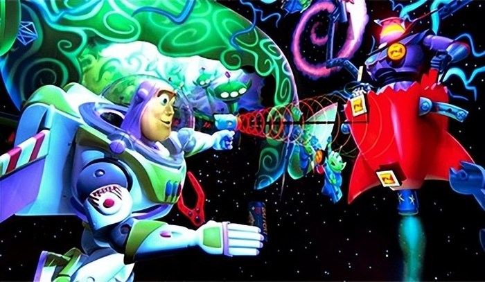 巴斯光年星际历险(バズ・ライトイヤーのアストロブラスター)・所在区域:明日乐园・搭乘时间:约 4 分钟・游乐设施种类:互动游戏系,适合与孩童一同搭乘