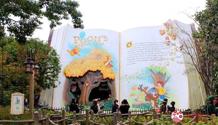 「小熊维尼猎蜜记」同样位在梦幻乐园内,外观是一本巨大的森林绘本,游客们彷佛走进小熊维尼的绘本世界,搭上可爱的蜂蜜瓮,一起在百亩森林穿梭,与小熊维尼和好朋友们展开天马行空的寻蜜之旅!看小熊维尼时而绑着气球飞天、下一秒又出现在布满蜂蜜的巢穴,偶尔小迷糊偶尔又满足的神情超可爱!堪称是园区内最疗癒的游乐设施。