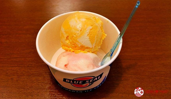 到「BLUE SEAL」除了吃定番的巧克力、香草口味之外,推荐吃吃看选用冲绳当地名产制成的限定口味:琉球贵族奶茶(冲绳县产红茶茶叶)、冲绳香檬雪酪(冲绳县酸桔果汁)、红芋、盐金楚糕(北谷海盐),不同季节推出的口味也不同,到冲绳时不妨留意一下!