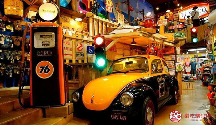 C区最大标地就是这巨大的「SOHO」招牌了!这栋同样也是美式潮店百货,举凡美军风、夏威夷衬衫、海滩休闲风、重机皮衣风、牛仔风等各种美式风格的服饰,都可以在这边找到适合自己的穿搭风格!还有其他车牌、海报、徽章等配件,也很适合买回家当作装饰品。
