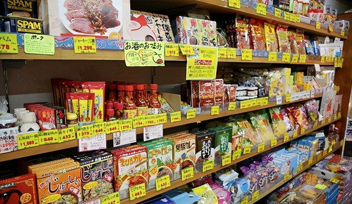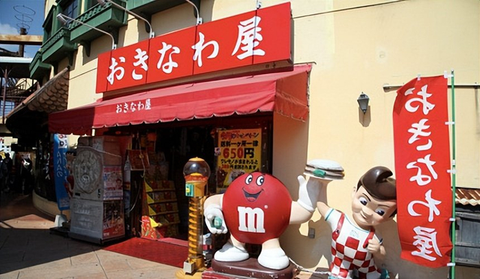 除了美式特色杂货之外,门口有巨大 MM 巧克力人偶的「冲绳屋」(おきなわ屋),可以买到各种冲绳限定名产、泡盛、石狮子纪念品等,就连当地人也很常光顾喔!此外,A栋楼上还有美式古着店,可以顺道上去逛逛!