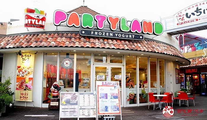 「PARTYLAND」是全日本第一家自助式的优酪乳冰淇淋!号称「零卡路里」、「零脂肪」,还能帮肠道补充好菌,即使每天吃也不怕身材走样!冲绳店就位在「A&W」隔壁。首先领取纸杯后,挤出自己想吃的口味霜淇淋,再依个人喜好添加巧克力碎片、棉花糖、软糖等配料,最后秤重结帐就大功告成!