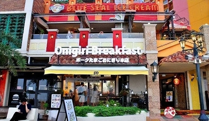 「猪肉蛋饭团」(ポークたまごおにぎり)也是冲绳必吃美食连锁之一。「北谷美国村分店」就位在「BLUE SEAL」的楼下,面对海滨区。记者推荐试试看美国村限定口味:塔可饭饭团、炸海苔佐山葵塔塔酱饭团,以及炸猪排猪肉蛋饭团。都是只有在美国村才吃得到的洋风口味唷!