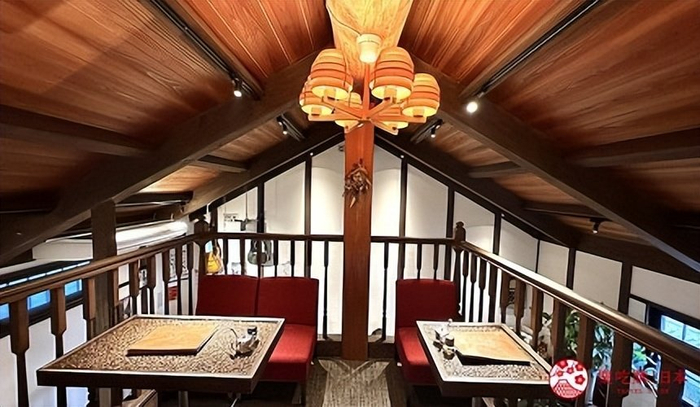 以鹈饲(渔民驱使鹈在川中捕捉鱼类的古代捕鱼法,自古以来在犬山中流淌的木曾川上进行)和灯笼渔火为造型的大厅装潢