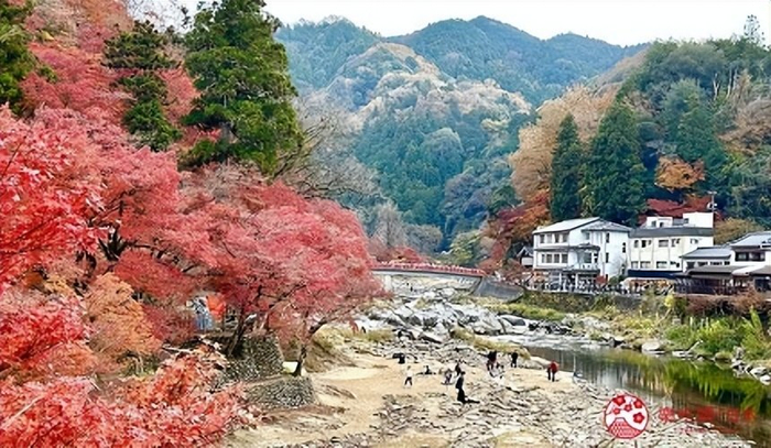 「香岚溪」位于巴川溪谷,是日本知名的赏枫名所,每到秋天都会举办「香岚溪红叶节」,能欣赏到溪边两岸、约4,000 棵树木形成红黄交错的美丽渐层,日落点灯时,则会呈现出与白天截然不同的浪漫情调。建议可到附近的「香积寺」参拜,寺庙会随季节变换推出不同颜色的树叶绘马,可爱又上相。