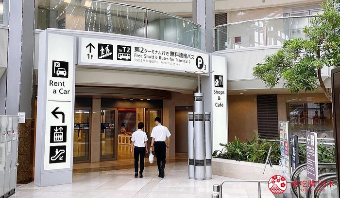 由上图可看出,旅客搭乘电车抵达机场车站后,出站即可走过空桥到达「第1航厦」,主要机场服务、店家都在这里,大多数航班也都是由第1航厦起降。至于廉价航空专用的「第2航厦」则是在另一个区域,需到「AEROPLAZA」搭乘机场接驳车才能前往,搭机时需多加留意别搞错罗!