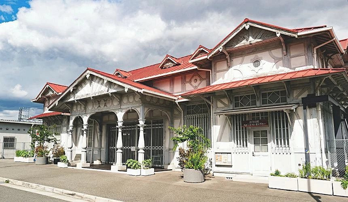 来到香川县代表景点「金刀比罗宫」时,许多旅客都会行经「琴平车站」,这座古典车站于大正时代所建成,采用了北欧建筑风格,斜面屋顶上镶嵌着半圆窗,白色外墙上可见井然有序的木造结构,车站前广场上则设置了充满东方色彩的石灯笼、石狮子雕像,与欧风建筑意外形成一种恰到好处的和谐感,成为琴平町最具特色的建筑之一。