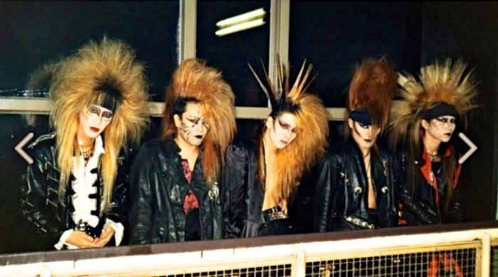 1989年的X JAPAN团照。由左至右:TAIJI、PATA、YOSHIKI、TOSHI、HIDE