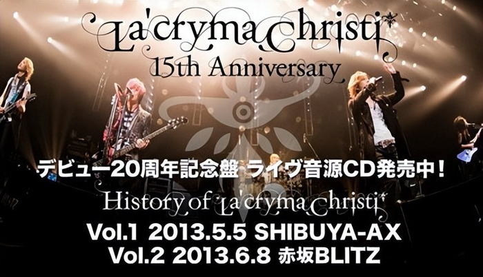 La'cryma Christi成军于1991年,团名有「基督的眼泪」的意思。成员包括主唱「TAKA」、吉他手「HIRO」、吉他手「KOJI」、贝斯手「SHUSE」、鼓手「LEVIN」。La'cryma Christi的曲风和一般视觉系乐团较不同,以柔和清新的抒情歌为主,歌词常带有正面、温馨的含义,挥别大家对视觉系音乐的黑暗、负能量的印象。「La'cryma Christi」还曾经表示比起夸张的化妆与服装,更重视的是音乐的内涵,所以比起音乐的品质,化妆只是附属品。