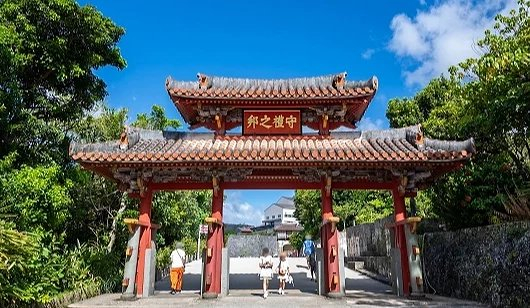 「波上宫」位在那霸机场与国际通的中间,最早是为了祈求海上平安、风调雨顺而在此祭拜海神之地。之后随着琉球王国国力越发兴盛,与中国、朝鲜、奈良大和国等海上贸易频繁,所有出航的帆船都会望向高崖上耸立的波上宫,彷佛祈祷出航顺利,也保佑船员们都能无事返航。此外,琉球王国每年正月时也会来此祈求国泰民安、风调雨顺,可说是当时琉球王国皇室最爱的「第一神社」。