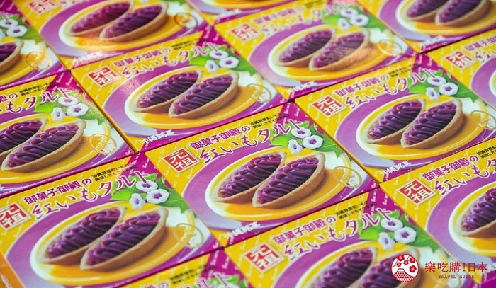 来到那霸国际通必逛的一间伴手礼店就是「御菓子御殿」,明星商品「元祖红芋塔」可说是来冲绳必买的名物!「红芋」也就是紫心地瓜,特色是甜味饱满、口感绵密,这款「元祖红芋塔」就采用了100%红芋泥,挤在松脆塔皮上,能吃到地瓜的天然甘甜,最适合搭配茶或咖啡一起享用。