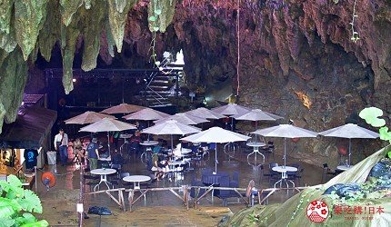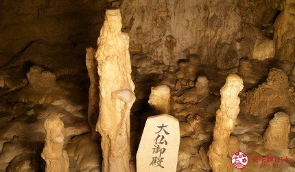 冲绳因为独特地形与气候,全岛共有600多个钟乳洞。「玉泉洞」是冲绳岛上最大的钟乳石洞,经过30万年的点滴累积,形成全长5,000公尺、共100万株以上的钟乳石。因为身处地底洞穴中,一走入内就可感受到舒适的阴凉感。密集的钟乳石、石笋、石柱等奇形造景,以及洞穴内流动的地下河、透过石柱渗出的水滴,搭配会场奇幻的艳丽点灯,彷佛走进非日常的地底王国!「玉泉洞」位于「冲绳世界文化王国」里,逛完钟乳石洞后,还能继续探访热带果园、传统工艺村、琉球王国城下町等其他园区喔!