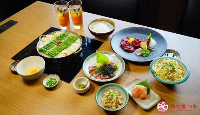 福冈自由行当中最期待的就是博多美食了!这次前往的「牛肠锅一藤」(もつ锅一藤)从博多车站步行只需3分钟,是福冈当地知名的博多牛肠锅店,使用自家秘制的味噌汤头,以及严选黑毛和牛牛肠,吃起来软中带Q。另外福冈必吃的博多明太子、芝麻勘八、以及新鲜马肉生鱼片等福冈最道地的美这里通通吃得到,非常推荐大家前往喔!