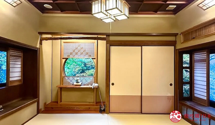 「AJISAI」(绣球花)为重新装修完成的客房,内部装潢新颖,却仍然保留了浓厚的和风气息。由7叠的主客室和次间8叠塌塌米组成的空间又大又舒适,一进到房间内就觉得身心很放松。房间里有几扇窗户,可欣赏溪流与庭园等不同角度的景色,尤以圆窗外的红叶美景最为迷人,怎么拍都像明信片般动人。