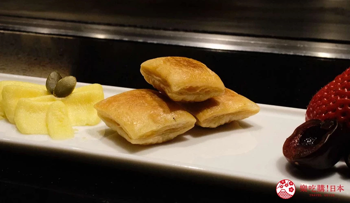 感动完食神户牛之后,可以享用当令食材制作的季节炊饭,或加价880日圆升级蒜香炒饭,确保大家都有吃饱。最后附上迷你甜点,记者试吃时提供的是自行组装的一口苹果派,DIY 组装派皮、卡士达酱和苹果变成一口苹果派的过程简单但有趣,成功为整份套餐优雅收尾,画上完美句点。