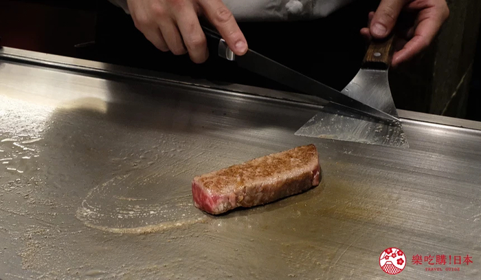 「神戸たん龙三宫店」秉持匠人精神,每一处用餐细节都经过非常精心的考量!例如摆盘灵感来自高级怀石料理;特制厚达28mm 的铁板,以确保能够均匀加热,完美锁住肉汁;铁板的厚度之外,铁板的处理也是令主厨自豪的一环,很多店家因为长年使用铁板,仔细看表面都会有油脂残留,但主厨认为如果铁板不干净便会影响风味,所以他每次收工都会费心思保养铁板,确保能烧出最好状态的神户牛。