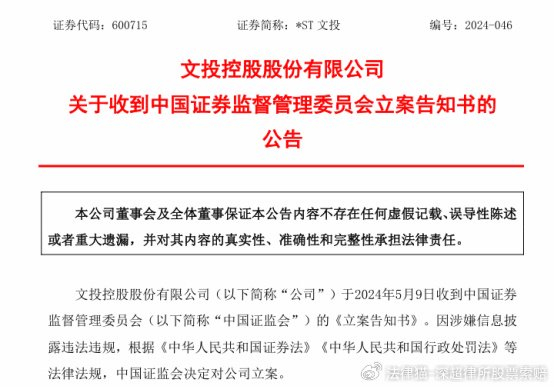 一、索赔股票名称:*ST文投(文投控股、600715 )
