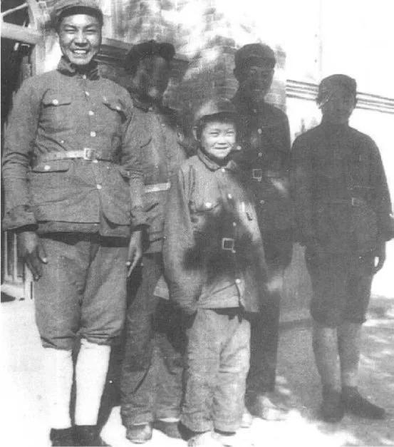 △红一、二、四方面军团以上干部于1936年在甘肃省宫和镇合影。第一排坐者右起:1.聂荣臻 6.萧克 7.罗炳辉 8.徐海东;第二排蹲者右起:6.杨尚昆 7.杨成武 15.萧华;第三排站着右起:3.任弼时 10.陈赓