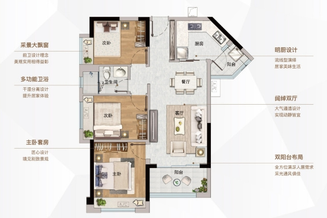 建面约96㎡的三房两卫,号称是组团的“断货王”,这个户型对比上面的就方正很多。