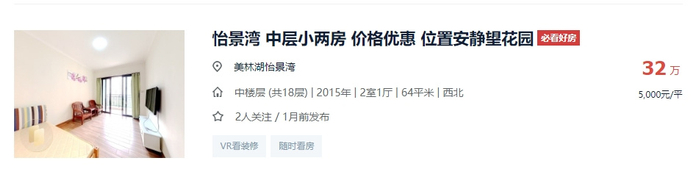 2、作为一个发展了10余年的楼盘,美林湖以5500-6500元/㎡开盘,现在贝壳网显示新房参考均价5800-6000元/㎡,价格不涨反跌。