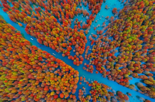 坐落于宁国市方塘乡,两千余亩红杉林渐次变红,快来体验一次坐着竹筏穿行在杉林之中的感觉,热烈的红树林,与远处的青山形成色彩碰撞,在阳光下十分夺目。