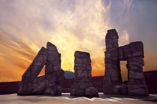 是皖南事变主战场的标记物。在它身后是用大理石砌成的由左向右逐渐增高的红色背墙,象征着一面红旗,墙体详细记载了皖南事件的经过,充斥着浓厚的历史文化。