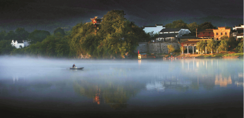 经过岁月洗礼依旧保留住了这里的原汁原味,古老的传统习俗,大片的红花与经典的徽派建筑隔岸相望,一艘小船链接着秘境与世外的天地。