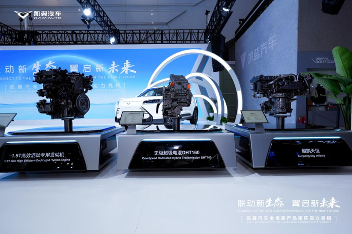 同时,凯翼带来了效率领先的动力总成技术:热效率超过48%的鲲鹏天恒发动机,代表了燃油利用率的行业巅峰;无级超级电混DHT通过高度集成化设计与多模式工作能力,实现了行业领先的峰值与综合效率;而1.5TGDI高效混动专用发动机则以46.5%的热效率和卓越的NVH性能,提供了效能与静谧的完美平衡。这些核心技术共同构成了凯翼汽车“翼启新未来”的底气与信心。