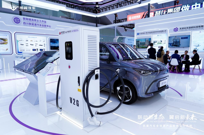 智慧能源先锋: 凯翼与欧阳明高院士工作站协作,带来拾月Mate V2G场景,演示车辆如何从交通工具变身为与电网双向互动的智能储能单元,探索未来能源管理的新模式。