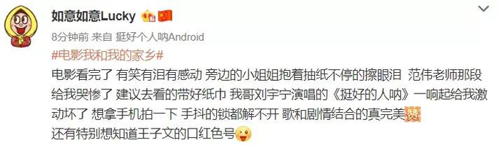 观看《我和我的家乡》的过程中,欢笑感动的同时更多的是让我们想到自己熟知的那些人,这些回忆燃起了我们对家乡的那种自豪。