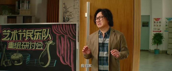 比如:影片从喜剧走入温情节奏时,他走进教室,无意间踢到了一旁的母鸡,这是对前面“欢闹”的一种承接,他开始上课,通过和学生的几句对话,很自然地将故事从搞笑过渡到了走心。等观众的心沉静下来,影片闪回到了1992年,观众跟随范伟的表演完全沉浸至一名乡村教师的最后一课。