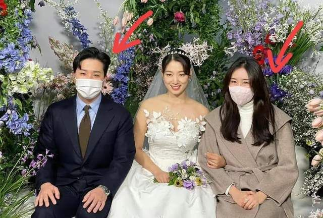 婚礼现场,朴信惠跟大伯、大嫂的合照,严谨的笑容溢满在脸上。从整体气质上能看出来,崔泰俊的哥哥和嫂子气度不凡。