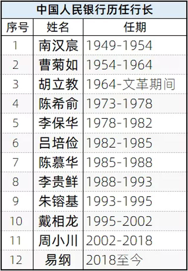 中国人民银行发展至今,历任人民银行行长共计12任: