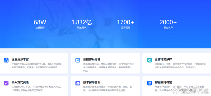 更进一步展望,双方可以国锐旗下的物业项目为试点,落地“线上问诊+线下健康检测+慢病管理”的服务组合,创造更多业务增量。