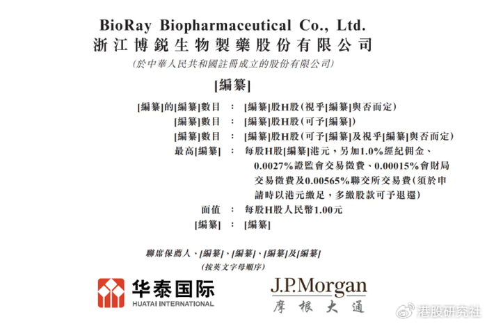 2026年1月6日,浙江博锐生物制药股份有限公司(简称:博锐生物)正式向香港联合交易所主板递交上市申请。