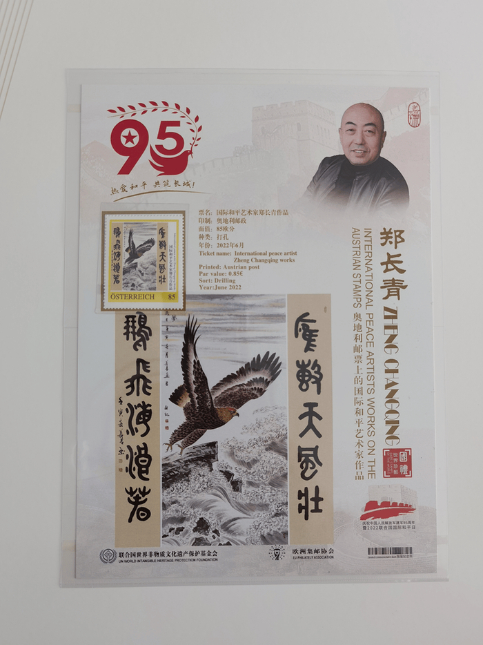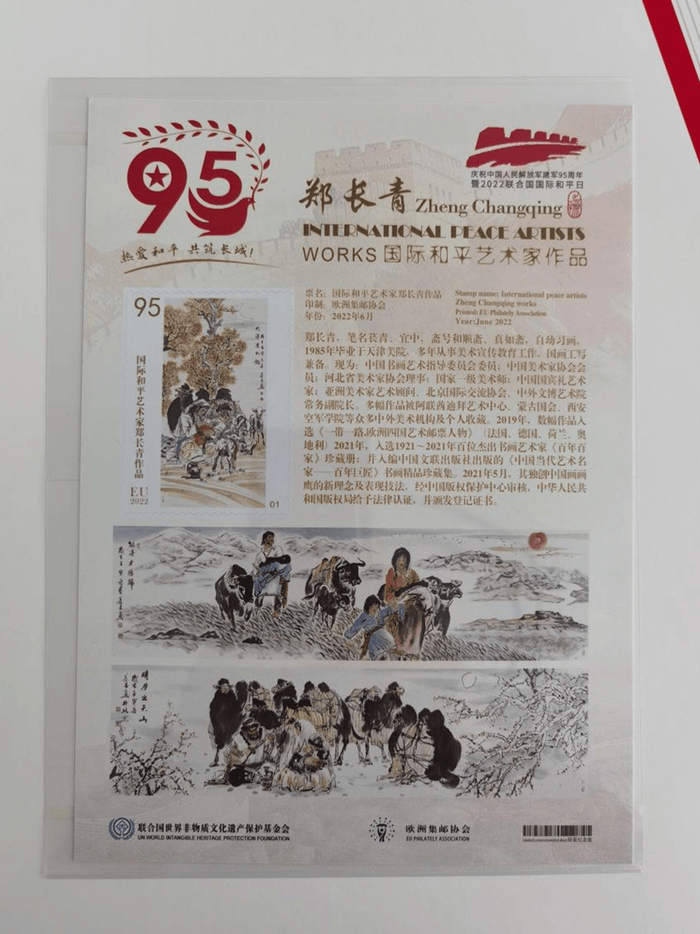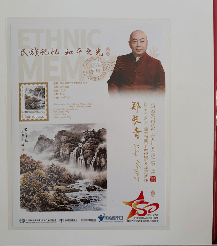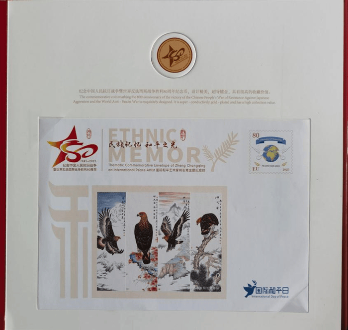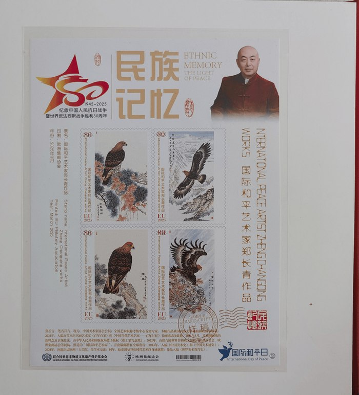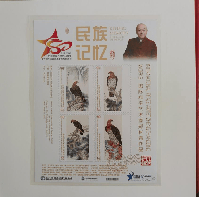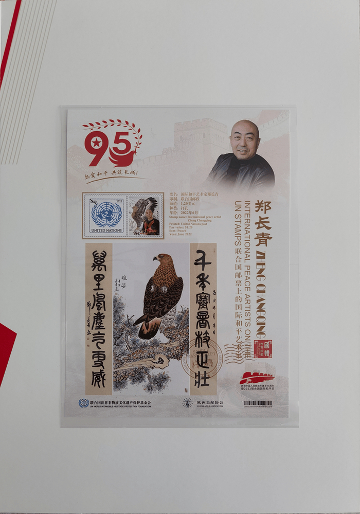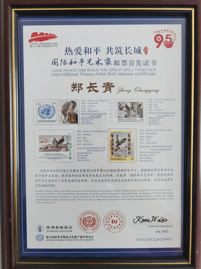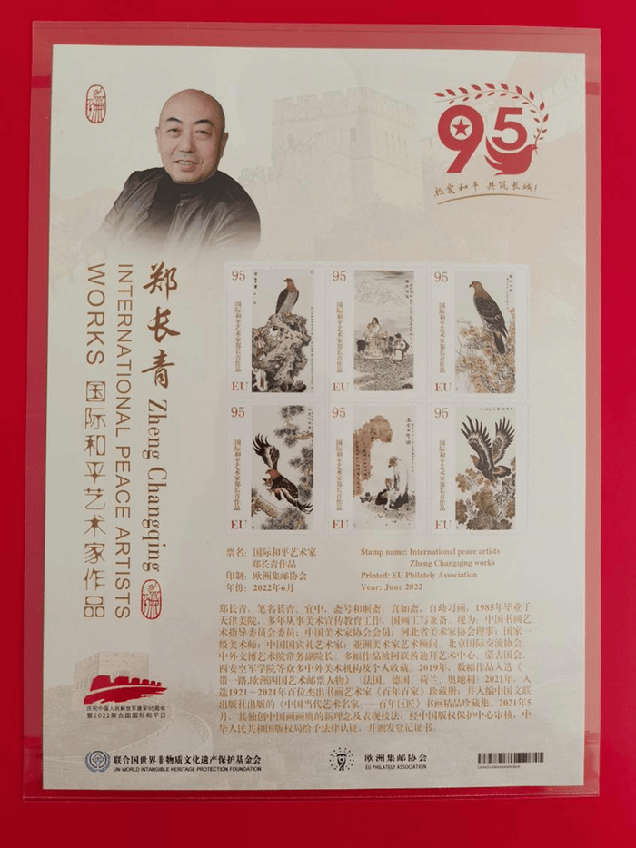 附:郑先生《国际和平艺术家》奖章、奖牌、全球限量发行的邮册和邮票首发证书图片…